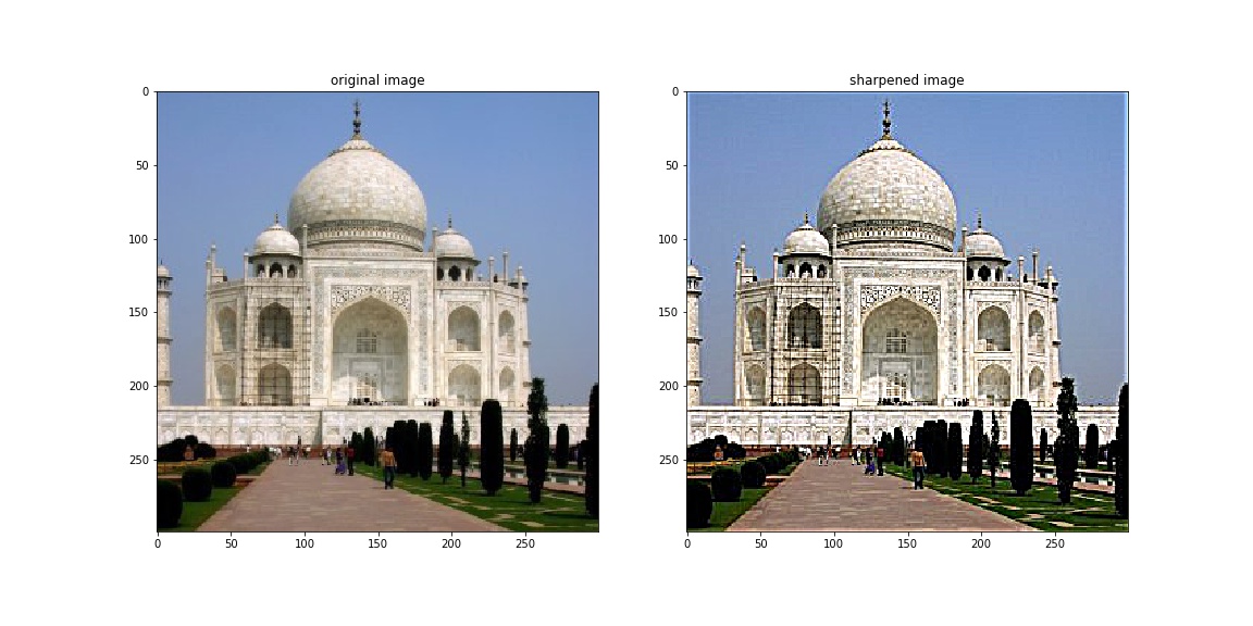 For a blurry image, we want to extract the high frequecy and add it to the original image so as to have more information in high frequecy. This process can be described as: , where is the sharpened image, is the original image, is a parameter representing how much high frequecy we want to add, is unit impulse and is a Gaussian Kernel.