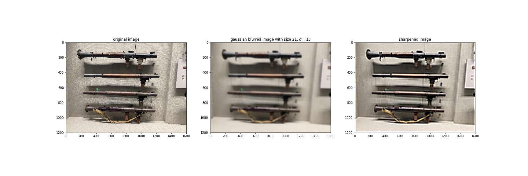 Due to the fact that the Gaussian blurred photo has lost information of high frequecies, we cannot get the same quality of unblurred photo even after sharpenning. This operation only increases the proportion of high frequecies of blurred images which do not contain higer frequecies of original image. So we will not able to recover information that does not exit in blurred images.